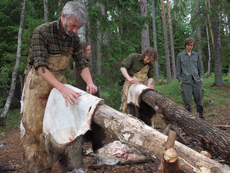 Die Haut ist ein Geschenk der Vierbeiner, das fast völlig aus unserem Alltag verschwunden ist. Es begleitet uns aber immer noch in Form von Industriellem Leder an unseren Schuhen, oder Taschen. Wir werden Rehwild-decken aus dem Vorjahr, auf Wunsch auch Rotwild, oder Häute, die ihr selbst gesammelt habt in hirngegerbtes Leder verwandeln. Ja Hirn,... für diese Gerbmethode benötigt man keinen Tropfen Chemie, nicht einmal Lauge.   Es ist die älteste, uns bekannte Gerbmethode und funktioniert mit der Kombination aus Hirn oder Ei, und Rauch.